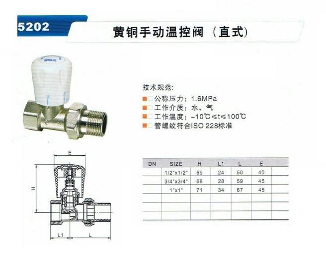 黄铜手动温控阀(直式)