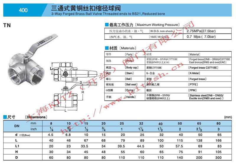三通黄铜丝扣缩径球阀